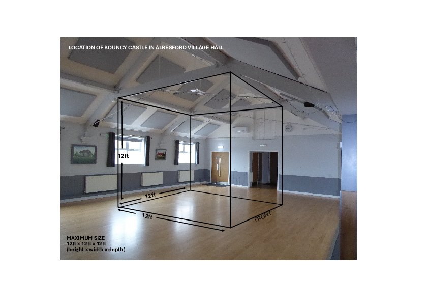 Please see: https://e-voice.org.uk/alresfordvillagehall/assets/images/inflatable-location and bouncy castle location for image guide
