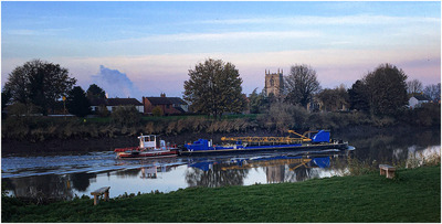 Barge Disturbs the Winter Trent's Peaceful Reflections