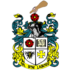 Baines School – like many of his designs Ellis used elements of the history of the school in the new coat of arms. The ham bone from the Baines family coat of arms, the market cross for Poulton and the red rose of Lancashire