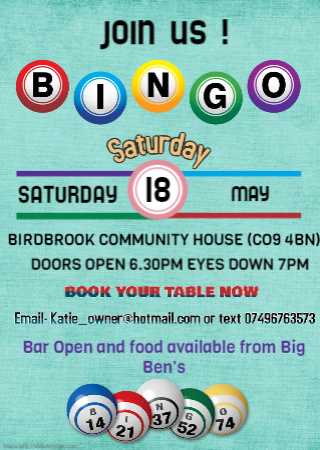Bingo night on May 18th, doors open at 6.30pm along with the bar and food available from Big Ben's. Then its eyes down at 7pm for 8 games of cash prize bingo, feeling lucky? Get those tables booked now jsut £12 for 8games