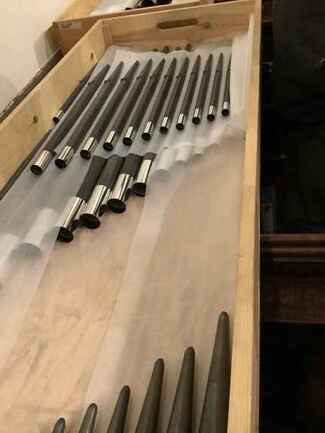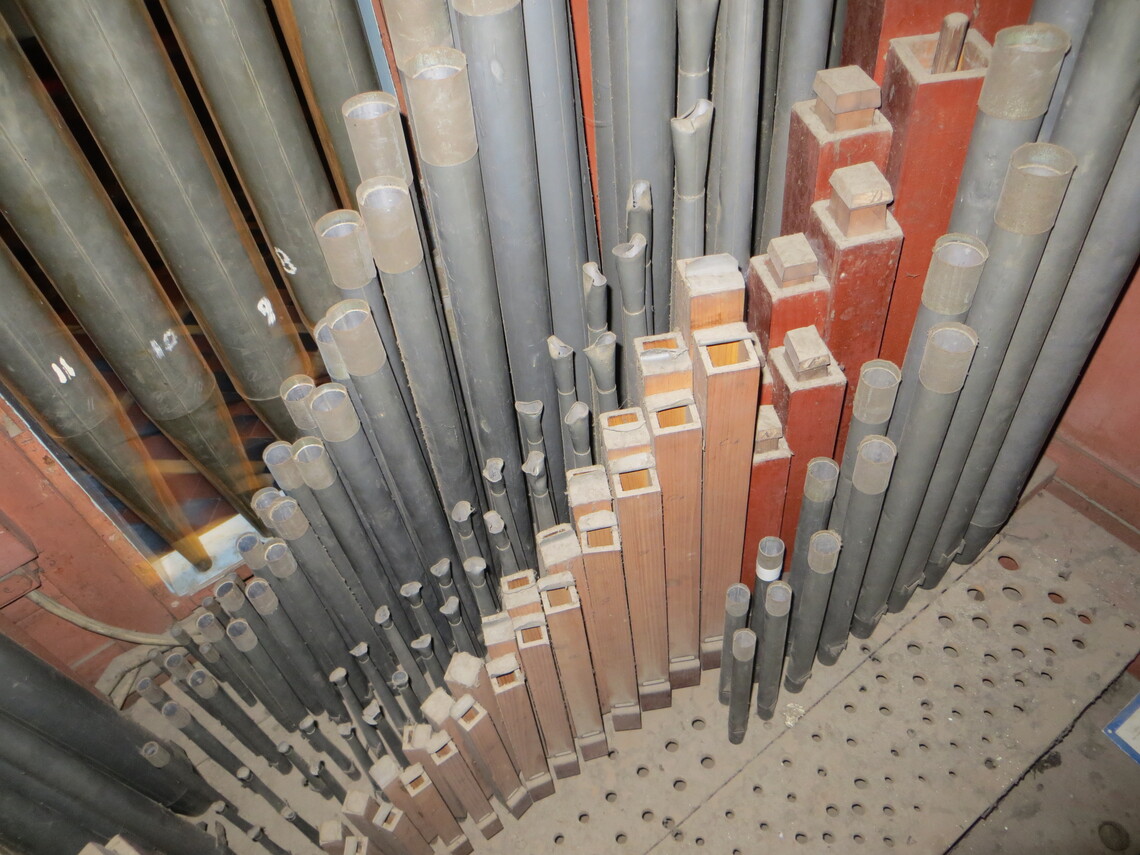 The pipes and blower are being removed to the restoration workshop and the cleaning has begun.