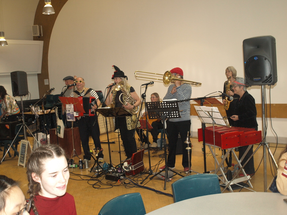 Thursday 30th May: Visit to Tiverton area with barge trip on Tiverton Canal. Followed by the Twinning Party Night at Isaac Hall, Braunton Academy featuring the 8 piece 'Rubber Band' who played all kinds of music, including Devon and Breton numbers which were a real hit. Our Plouescat friends particularly loved the mobile fish and chip van and the Hockings ice cream which arrived mid way through the evening. .