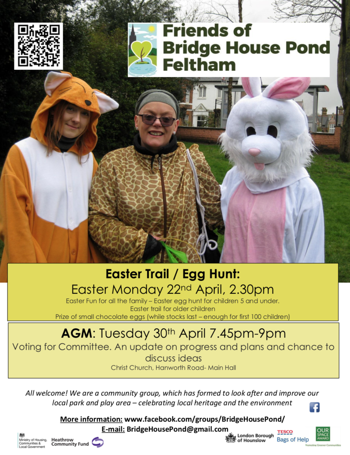 The Friends of Bridge House Pond have held regular community events in the Park, including an Easter Egg hunt and Summer community get-together.