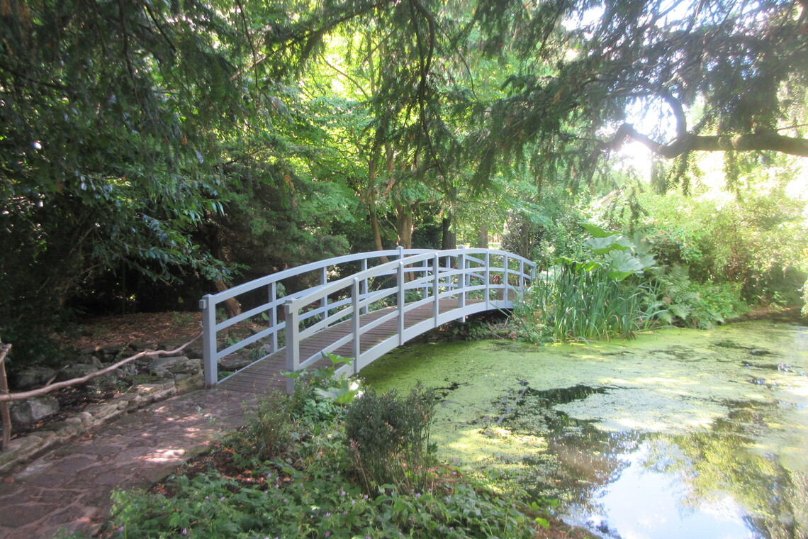 We then went on to the Courts garden at Holt. The gardens were created in 1902 by George Hastings on the site of an early 19th century woollen mill. It has lawns, borders, lily ponds, a Giverny style bridge, orchards, a conservatory and an arboretum. The only part of the Georgian House open to the public is the Rose Garden cafe. This is in the former billiard room. It was very crowded when we visited , several members went nearby for lunch. There is a second hand book shop in the garden area.