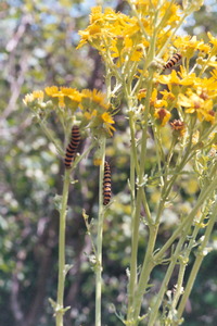 Cinnabar moth caterpillars on ragwort, 25th July, 2004