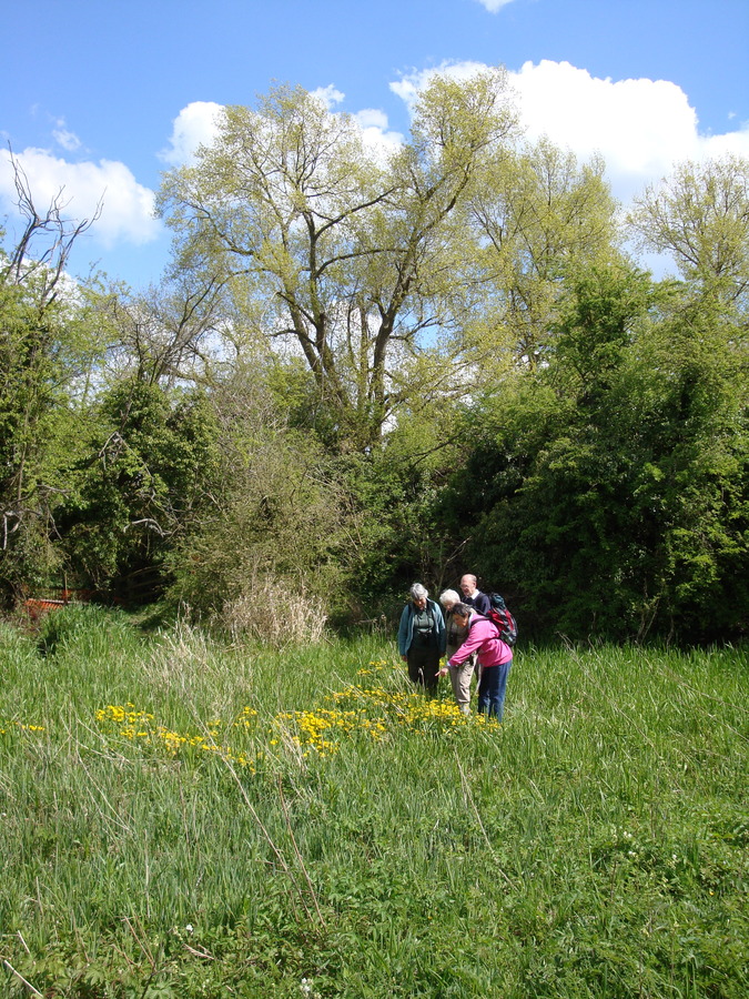 Admiring marsh marigolds, Black Poplar walk, 26 April, 2009