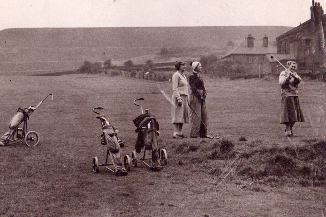 Mrs Millie Holden on the first tee of the old course c1950