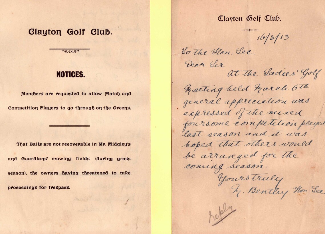 Club Notice c1910 Letter From The Ladies Section