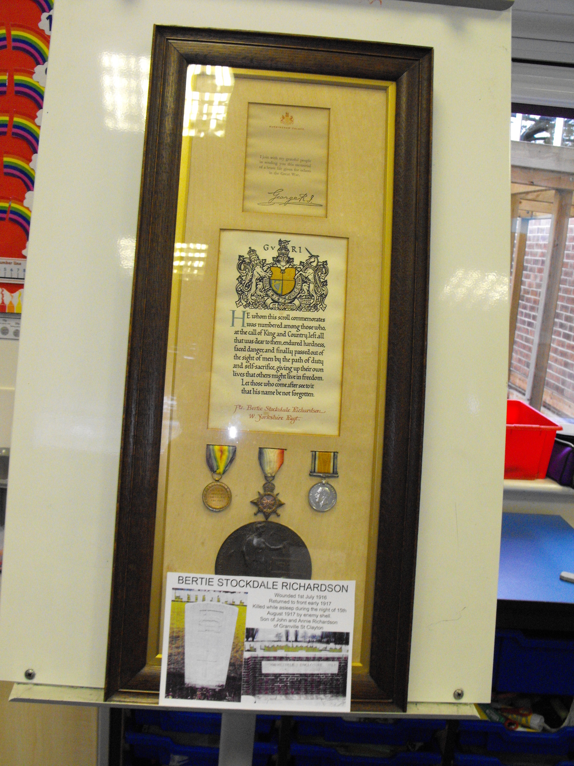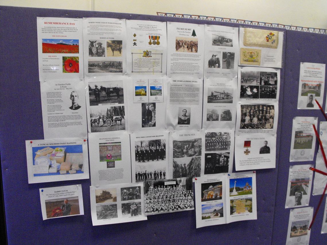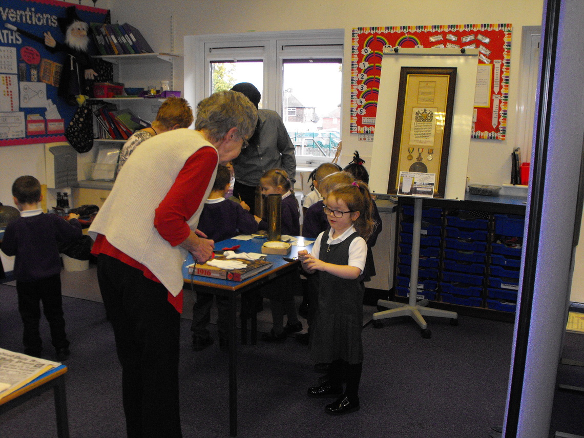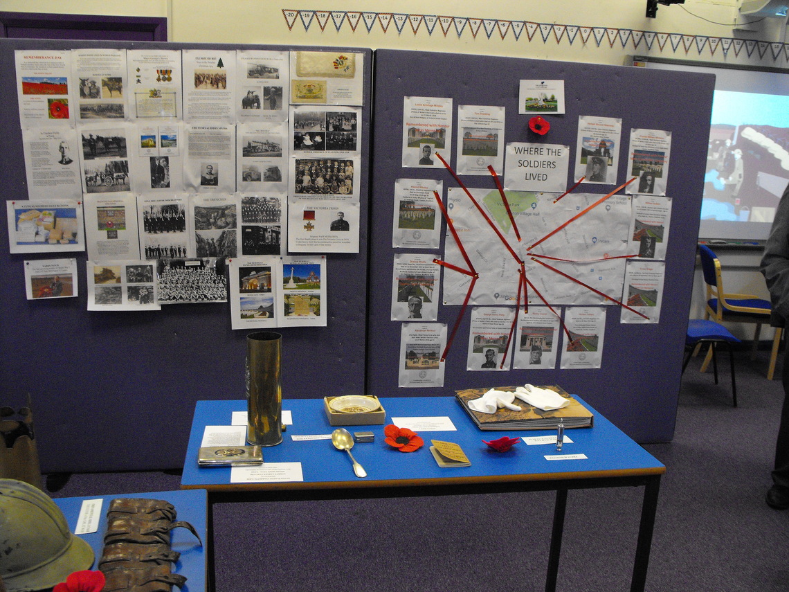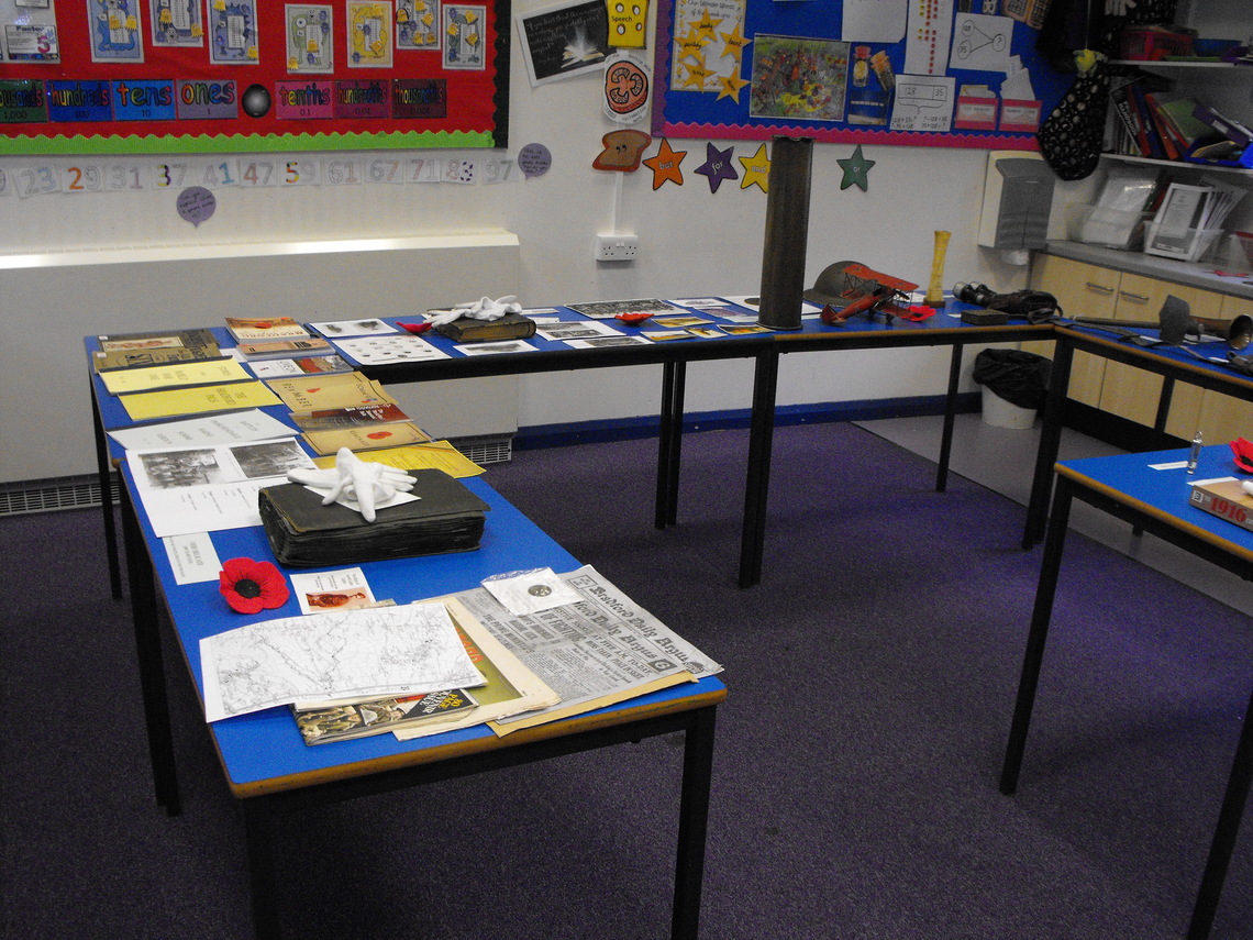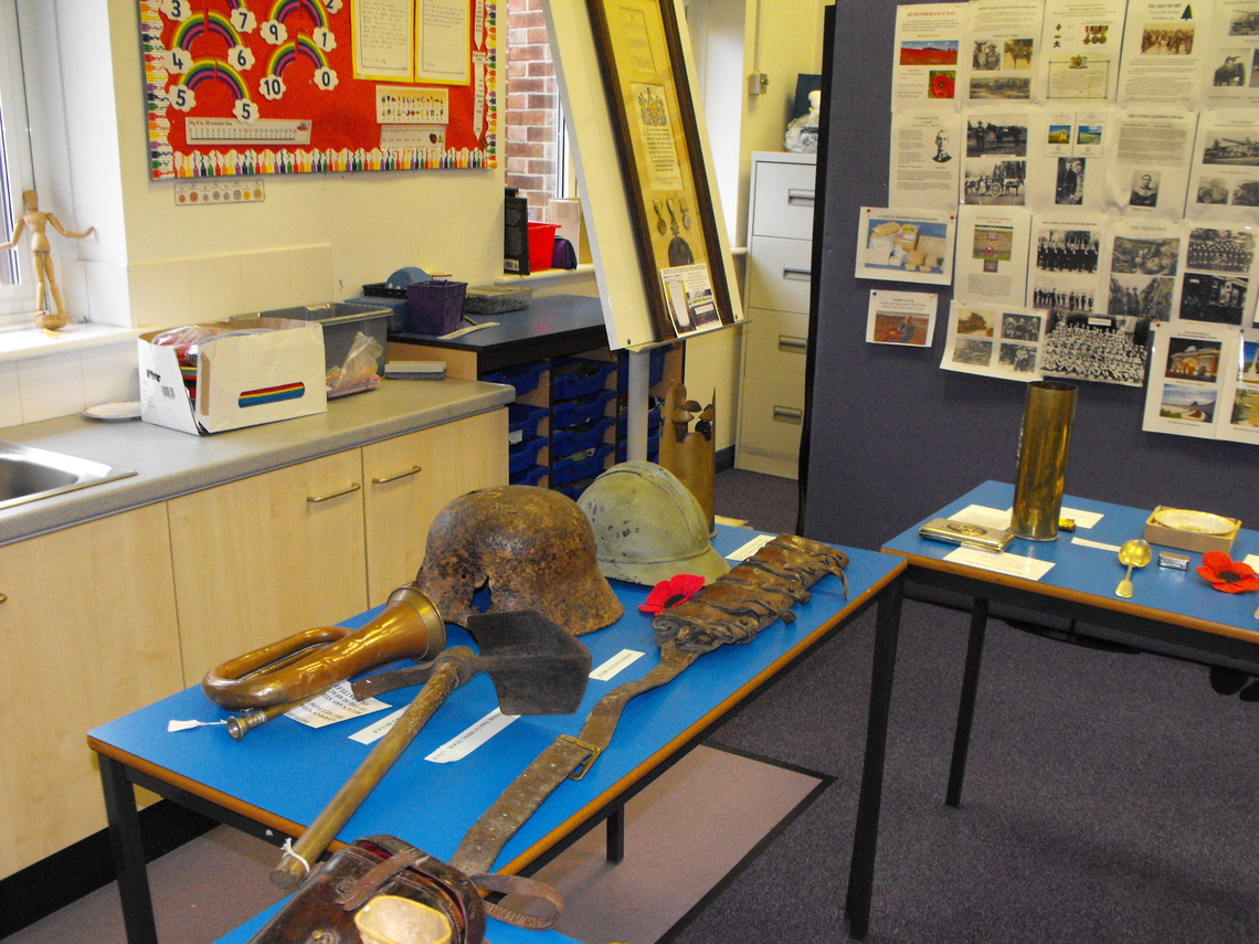 On Tuesday October 30th till Thursday November 1st we attended the Village Primary School to give an exhibition of memorabilia concerning World War One. Every child had the opportunity to visit us and see and touch the items we had on display