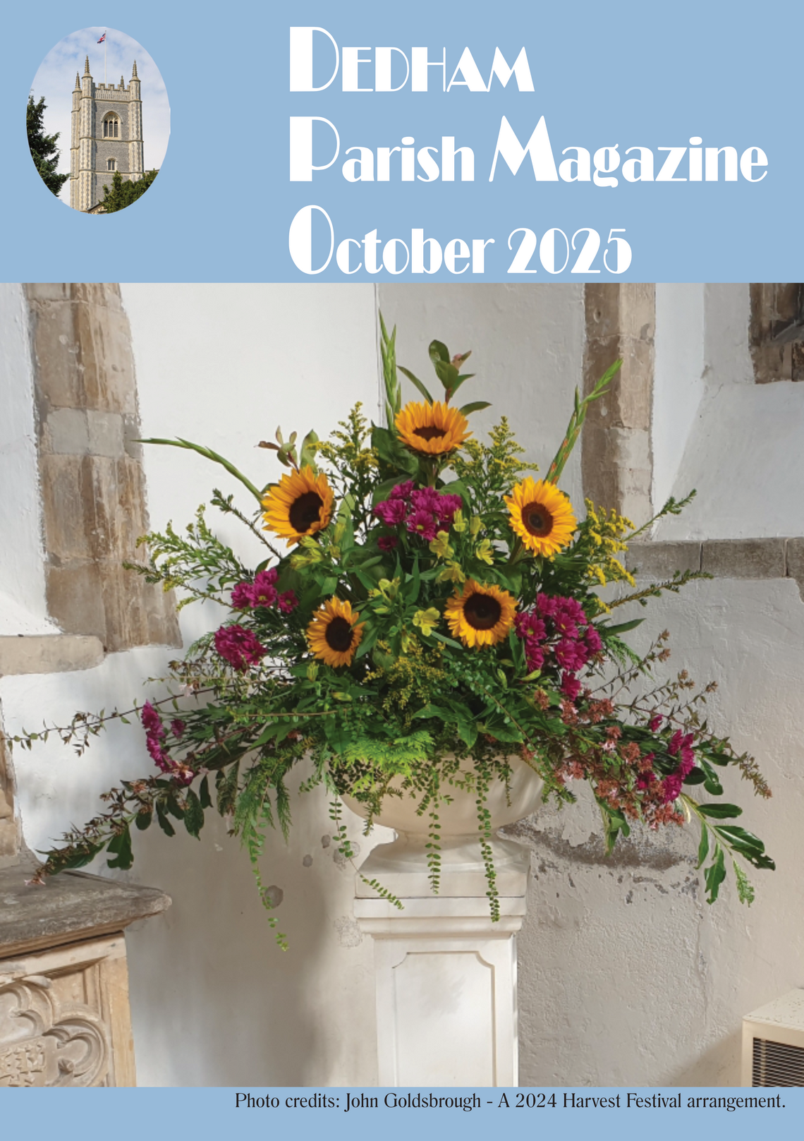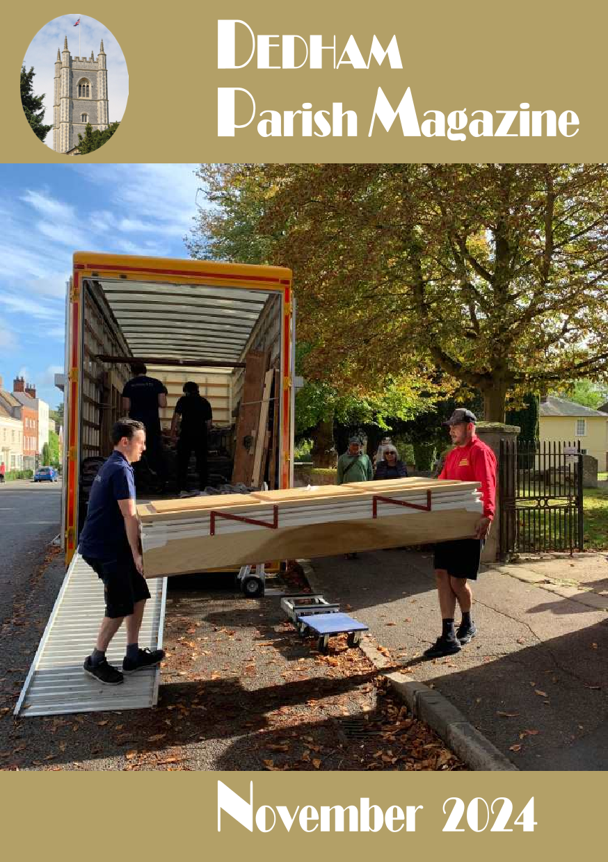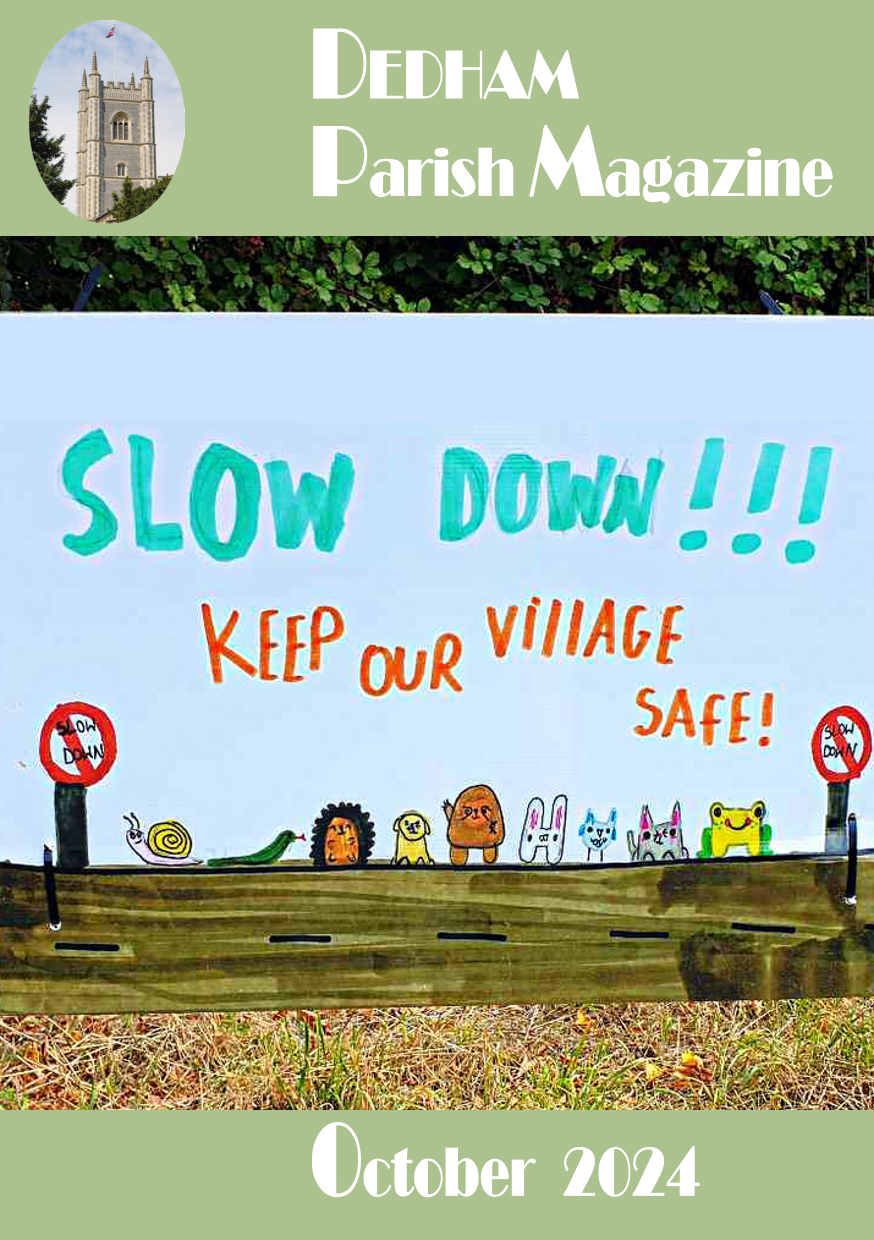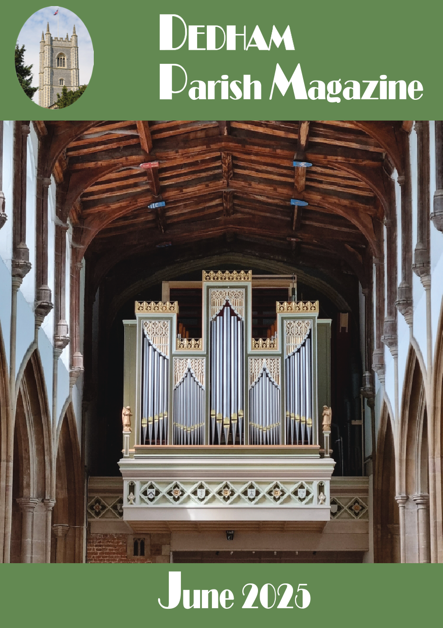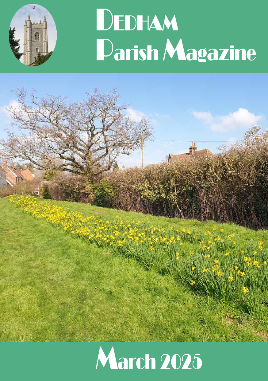 The Dedham Parish magazine is published 10 times a year. It was first publised in 1876. Click on the image to see a pdf copy of the magazine. You can also view 2025 and 2024 magazines by selecting a cover from the carousel alongside.