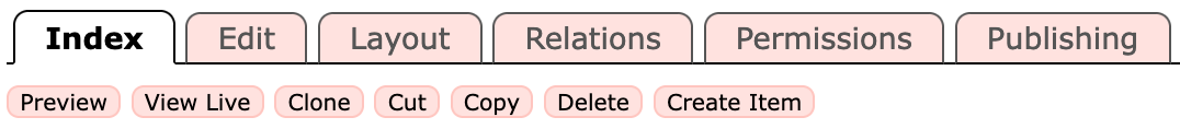 - Clone - immediately creates a copy of the page in the current folder.