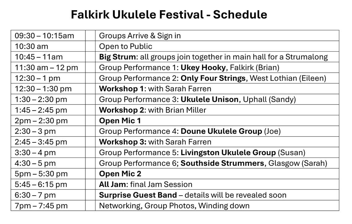 The Falkirk Ukulele Festival will be on Sunday, 30th June.