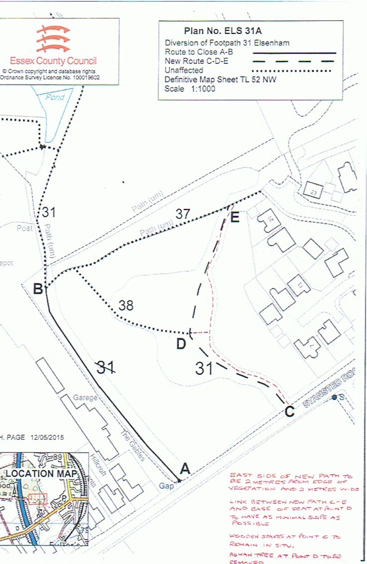 The first part of FP31, from Stansted Road to the top corner of the Spinney, will be closed. But in return there will be a new disabled access friendly path running from Stansted Road through the Spinney to link with Footpath 37 that runs from Leigh Drive.
