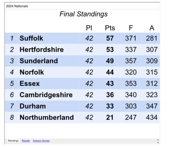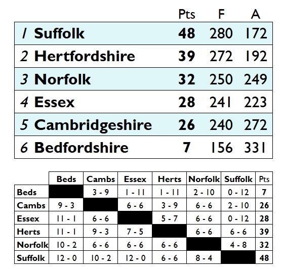 This was followed up by a further 8 - 4 win against Hertfordshire and took the Essex team into 2nd place