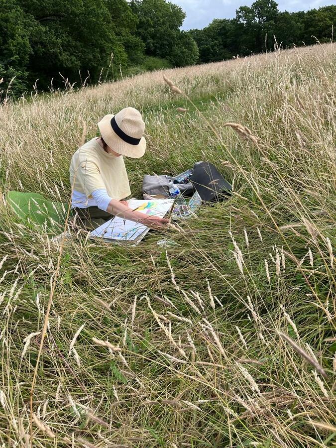 Artist in the wild flower meadow