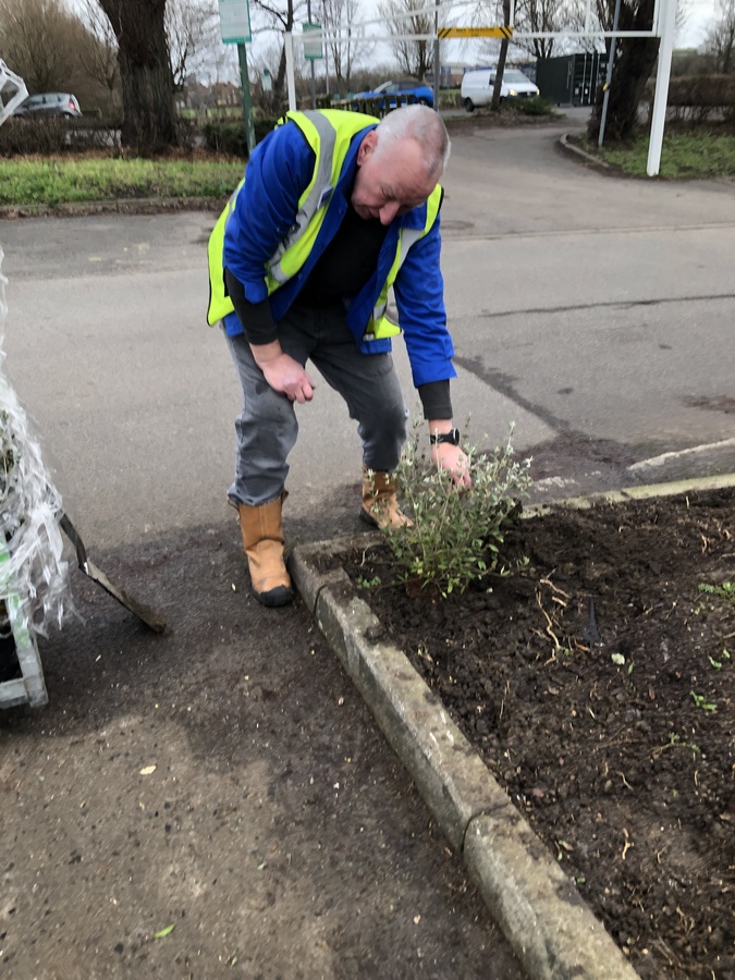 David planting the first Teucrium shrub to protect the Bee and Butterfly garden