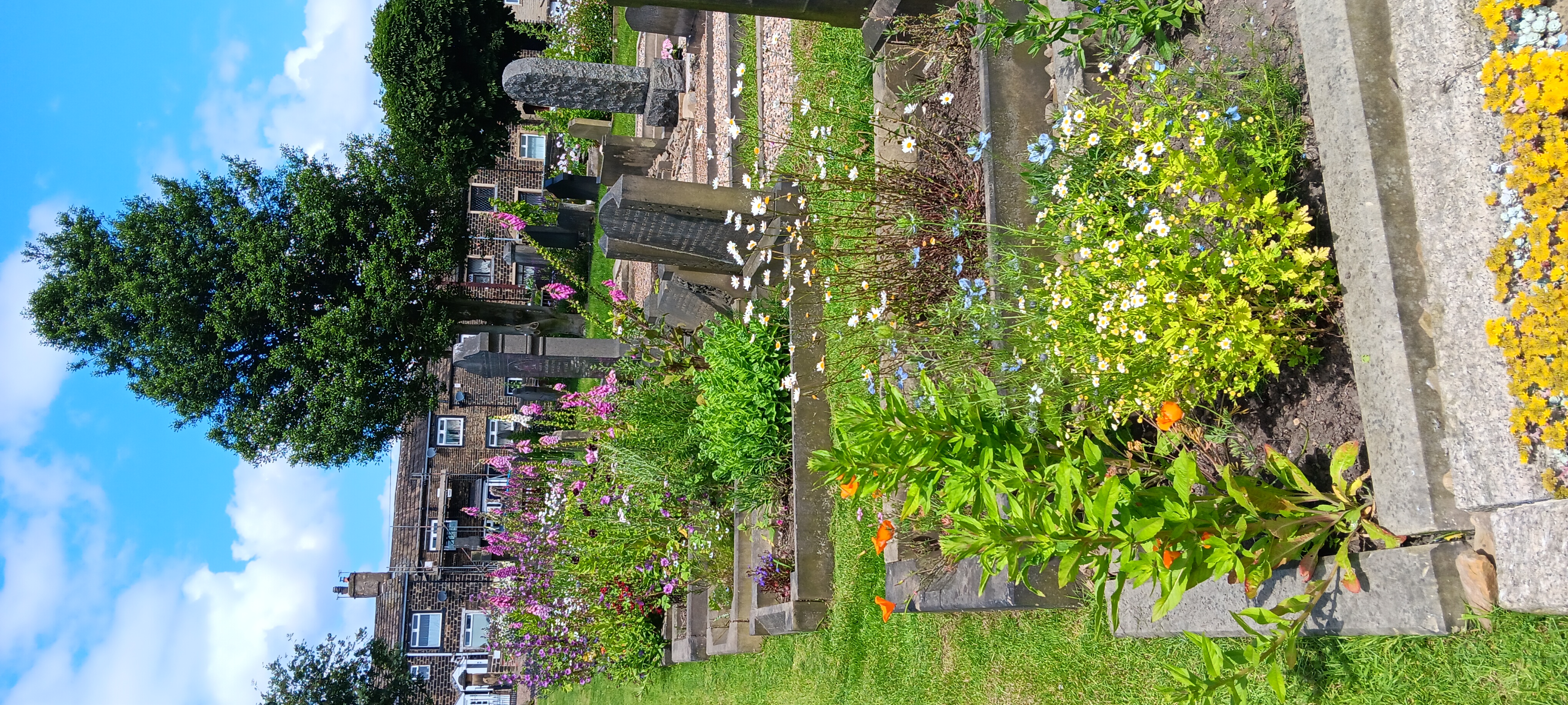The flowers in the cemetery are in full bloom at the moment – come and see for yourselves!