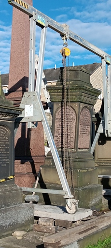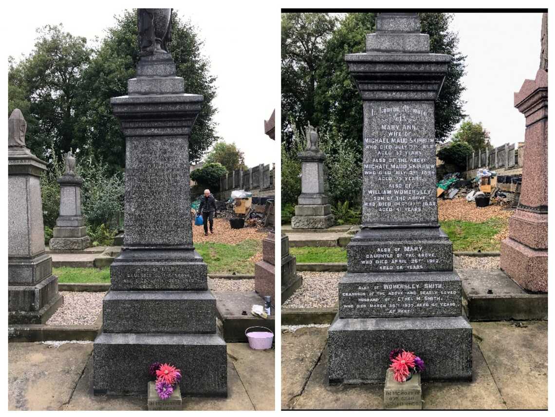 This month we have been very thankful for the local grave-diggers’ help in restoring and repairing some of our damaged monuments. Graham and his team came to the cemetery voluntarily with their specialist equipment and the results are outstanding, as you can see below. You can watch these restorations and some of his work at other cemeteries on TikTok. https://www.tiktok.com/@bradfordthroughthelens/