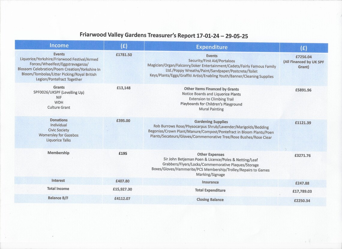 Click here for the summary accounts for January 2024 to May 2025, which were presented at our AGM on 29th May 2025.