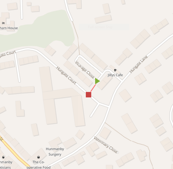 Village Path 17, Vicarage Close to Hungate Court near junction with Hungate Lane. Not listed as a public right of way. A short tarmacked path that links Vicarage Close to Hungate Lane and a shorter walking route to the doctors surgery and bus stop.