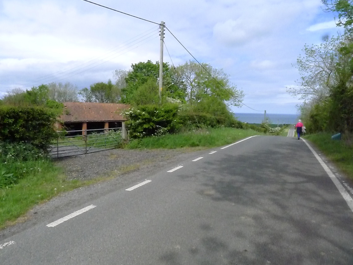 Photo above: Sands Road, brow of the hill at Moor Farm, with view of the sea at Hunmanby Gap