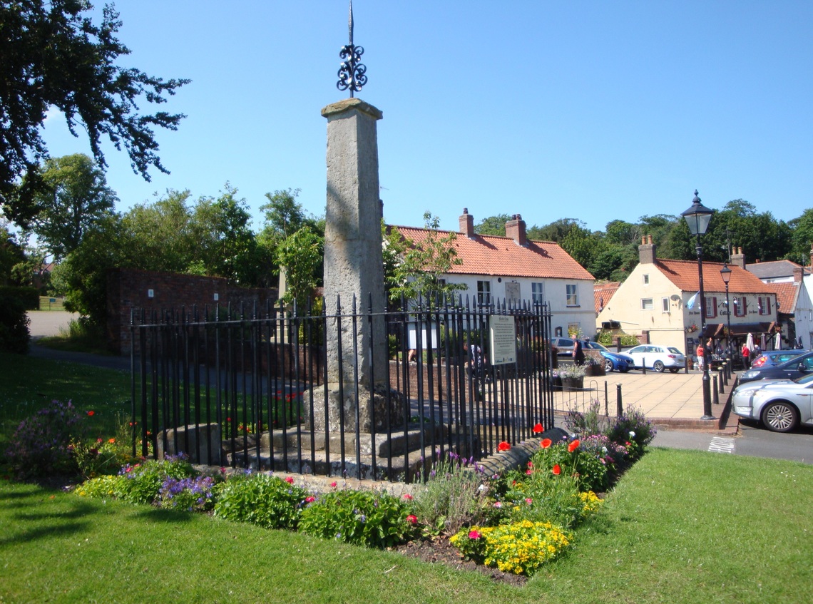 From The Cottage head down Cross Hill, passing the War Memorial and landscaped open area looked after by the Parish Council and Hunmanby in Bloom.