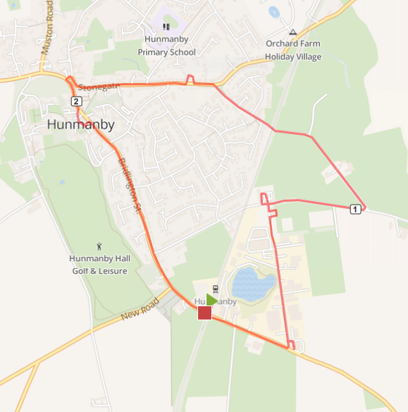 Leaving the Spirit of Yorkshire, turn right down the Industrial Estate Road. Go round the barrier at the bottom continue past the Hunmanby Playing Fields Association Club House, limited opening hours. (John Smith Hand Pump available)