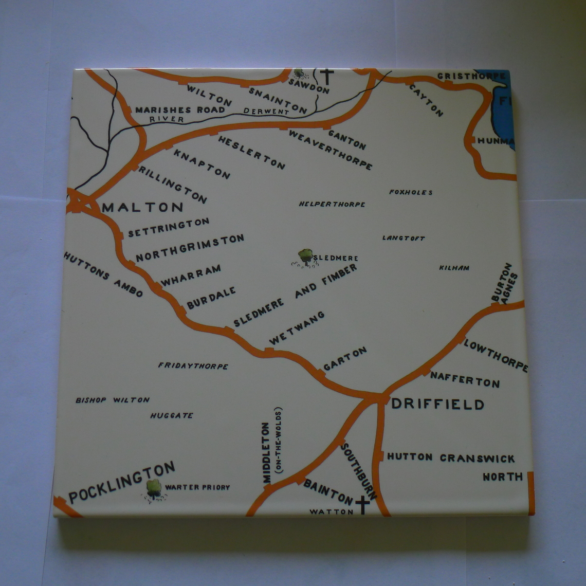 Photo above: The Yorkshire Wolds Tiles, part of the North Eastern Railway Tile Map at Hunmanby Railway Station