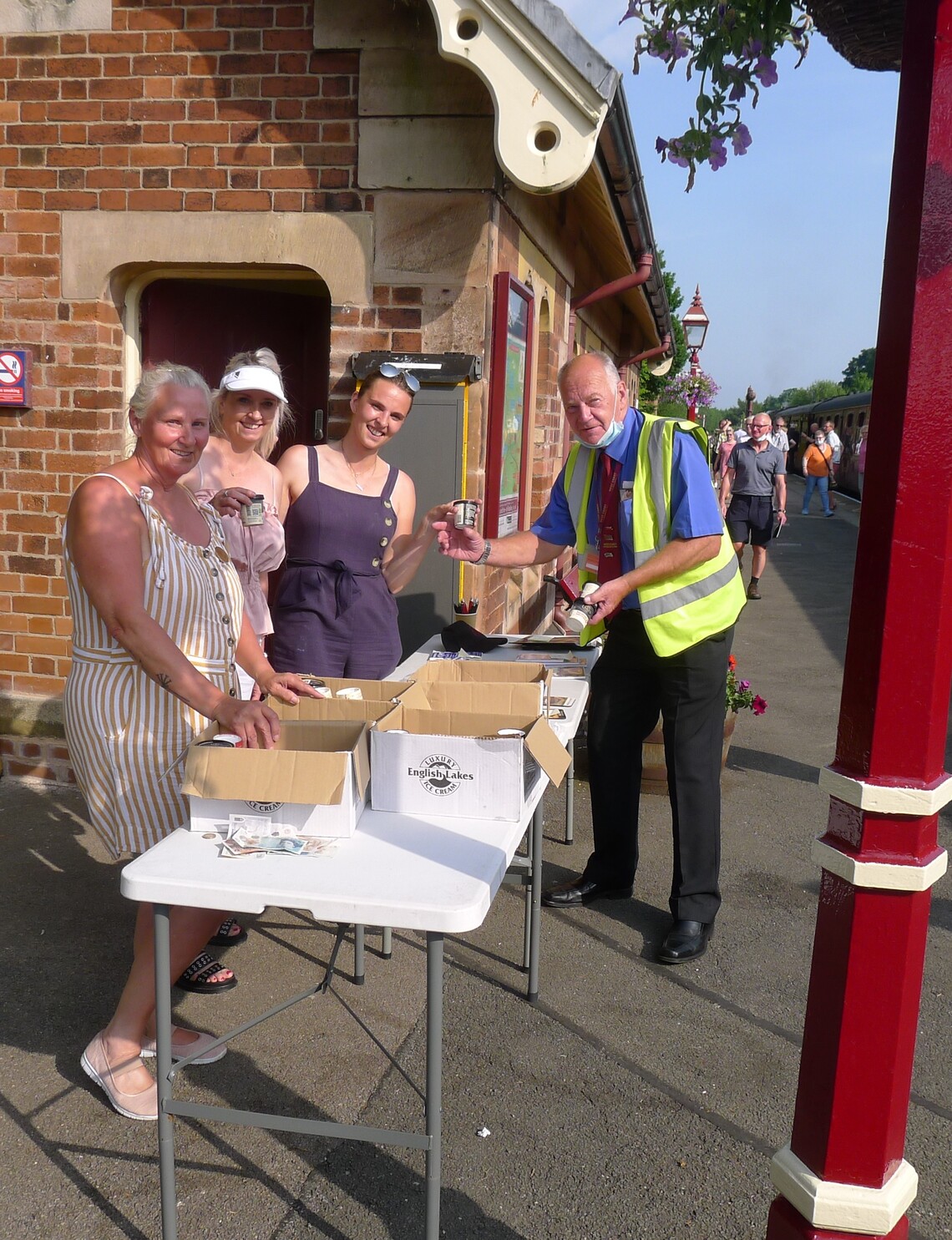 Photo above: In a little over 10 minutes at Appleby Railway station, over 130 ice creams were dispensed, passenger have also taken photographs of the steam engine being refilled with water, from the water tower funded by Appleby Round Table.