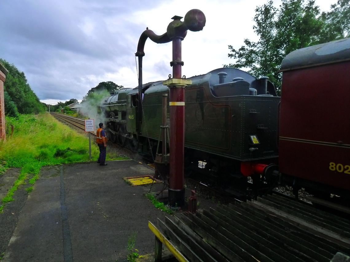 Photo above Steam Engine 8F Number 48151 fills at the water tower at Appleby station, Summer 2020