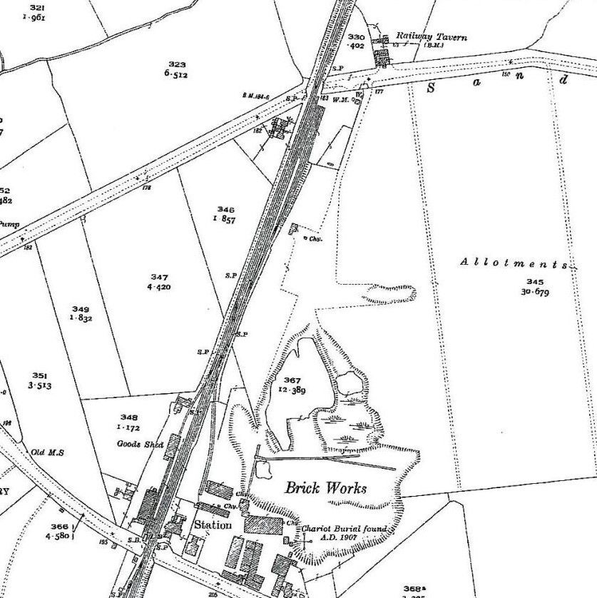 Below is a map of the Hunmanby Railway Station in 1926. The line from Hull to Scarborough was then owned by the London & North Eastern Railway Company. There is a short goods loop to the small, raised platform, built for loading animals on the Bridlington side of the crossing. Then, alongside the Scarborough platform is a long siding that gives access to the two goods sheds. The brick works is shown having its own separate independent rail system. This has its own Northern Eastern Railway Siding to the North of the Station, where two further sidings serve the coal yard staithes.