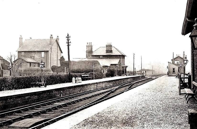 The picture below probably taken before the Second World War in the 1930's. Looking towards Bridlington, with gas lighting, telegraph posts, milk churns waiting on the platform, and old traditional railway benches made of cast iron and wood on both platforms. Point work connects the two tracks to enable shunting of goods wagons at the station.