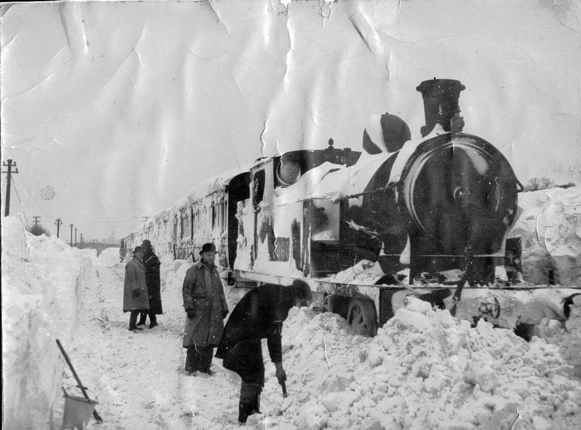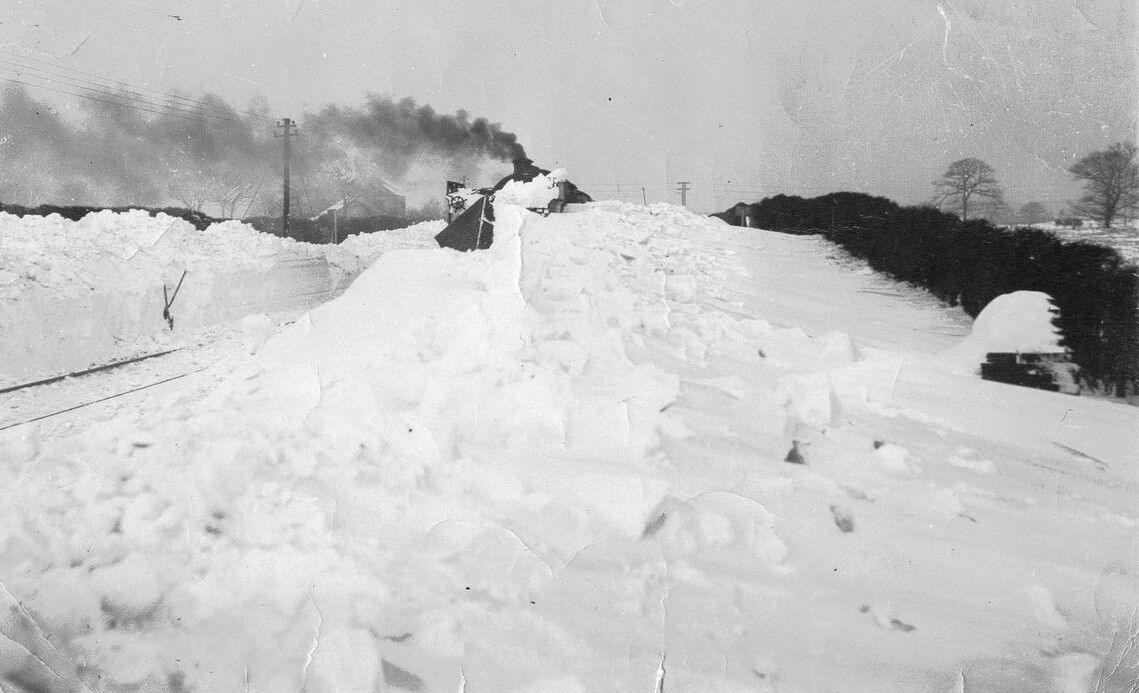These two photographs date from the bitter winter of 1947, when many lines across the north of England were closed for weeks, by heavy snow and sub-zero temperatures. With the pick and shovel providing the main stay of snow clearance, this was hard slow work for the gangs of railwaymen that battled to keep the arteries of the country open. Some large snowploughs were used, operating back-to-back, with two or three locomotives coupled together in between. They would charge a deep drift of snow until the amount of compacted snow and ice would bring the plough to a halt. The train would then run back, only to repeat the charge again and again, until the length of the drift had been cut with snow piled high to the sides. This did of course cover the adjoining track, but single line working could resume. The views are believed to be on the former Driffield to Malton line, (closed back in 1958). Photos thanks to Shirley Franklyn.