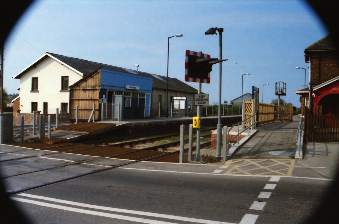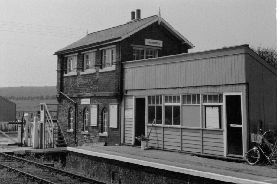 Below, Hunmanby station and level-crossing, 1997. Taken by the late Ben Brooksbank, retired Medical Scientist, keen photographer for nearly 75 years. Taken photographs, primarily of scenery and railways, in Britain and abroad, in colour since 1953 (slides, prints since 1980), digital since 2003). Lifelong Railway Enthusiast, in recent years concentrating on Closed Stations -- as well as Open ones. Several thousand photographs to offer, including over 1,000 b/w of Railway stations/remains (and 3,000+ of locomotive and train scenes) taken 1946-66); also, over 8,000 more recent colour photographs, including many of Stations. Scenery and other non-railway photographs cover the same period in comparable numbers.