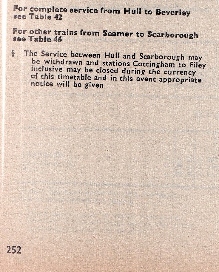 Photo above, a warning was placed in the Eastern Region Timetable for the year May 1969 to May 1970, that all station may close during the currency of the timetable.