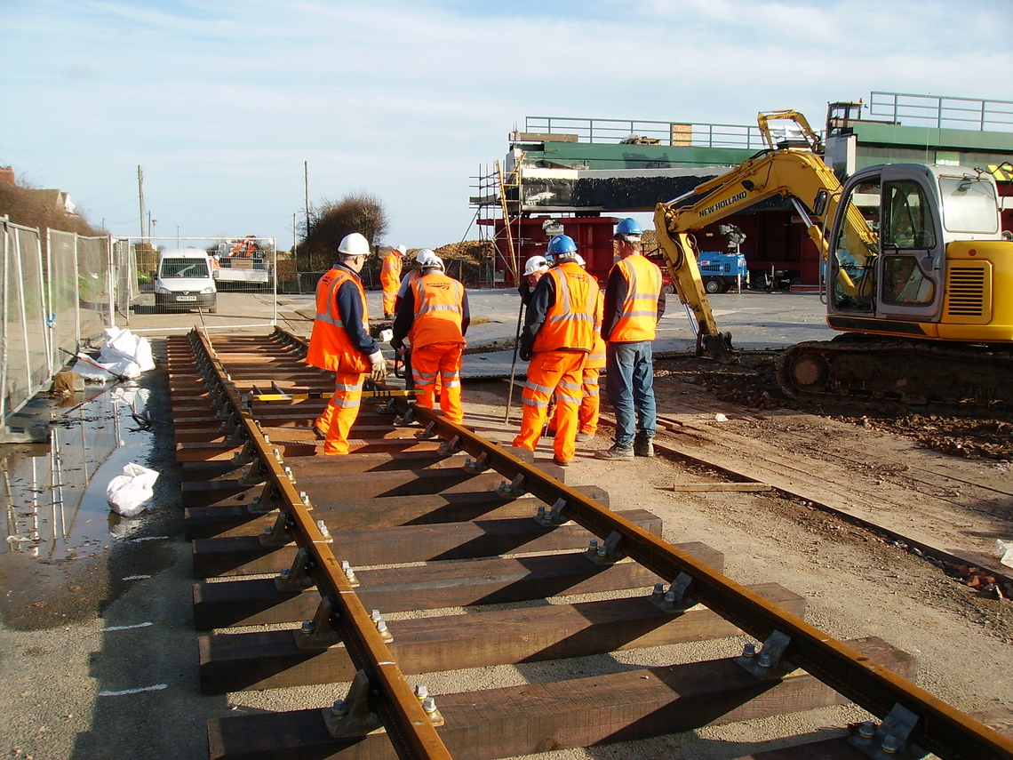 Photo above, assembling track panels and new rail bridge for Filey Road