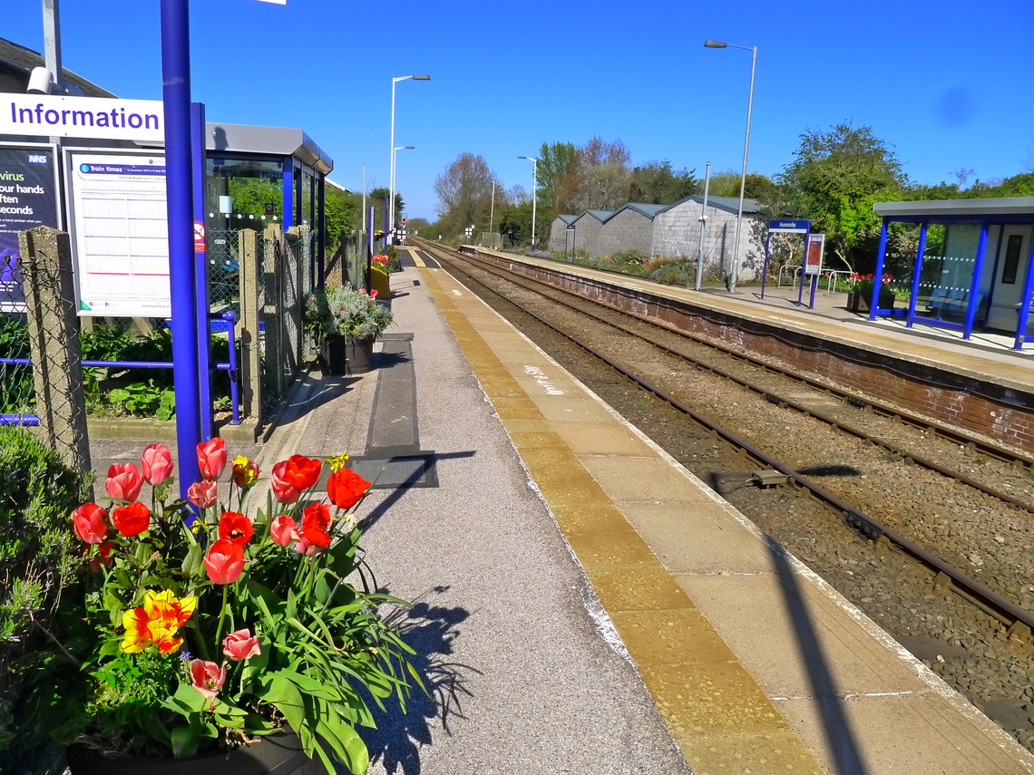 Below, a generous donation, from Reighton Nursery of over 1,000 Spring Bedding plants, gave an instant improvement to the station in the Spring of 2018. The half-moon baskets were filled with them.