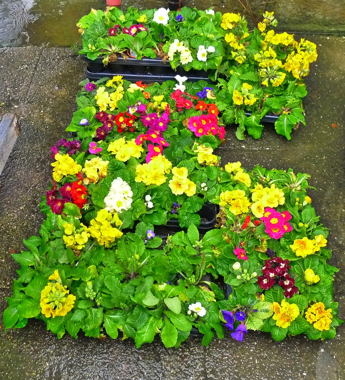 Below this photograph taken by Brian on one of his daily 'lockdown' walks showing the re-cycled begonias over wintered from the hanging baskets doing very well in the hot summer of 2020