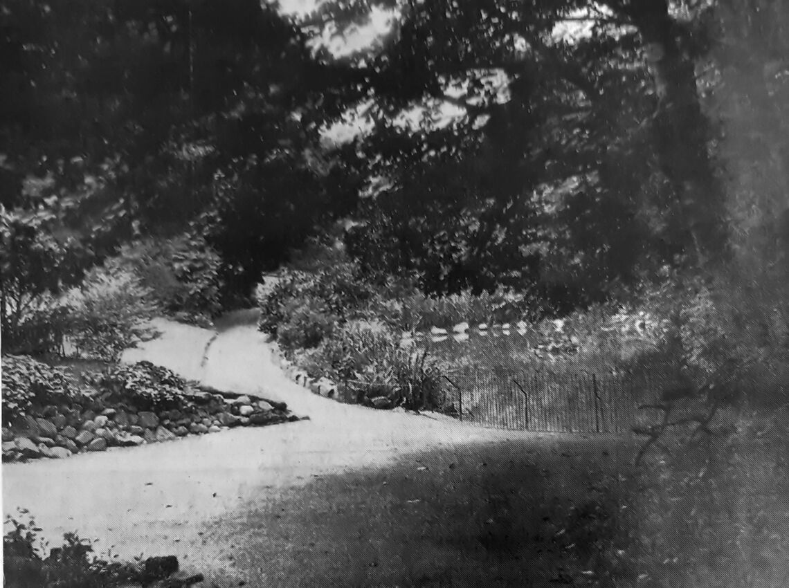 A map of the park dated 1896 shows many of the original features, the two lakes, the southern one having a fountain and a waterfall. This flowed under the main drive and into a stream and small pool with the stream continuing over another small waterfall before going under the main drive again. The stream crossied the present playing field before going into a culvert beside the boundary wall of the House of Correction.