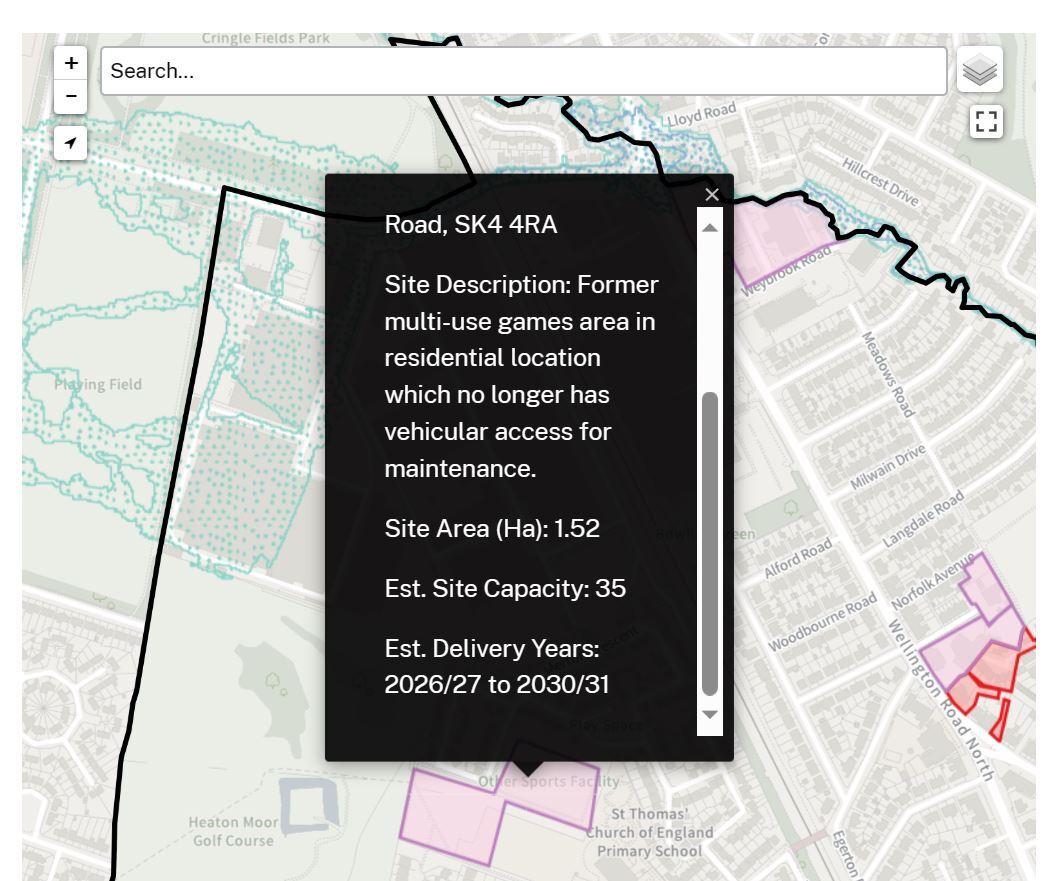 It has come to light that under Stockport Council's most recent Strategic Housing Land Availability Assessment (SHLAA) Peel Moat Open Space (both the derelict pitch and the adjacent Playground and Trim Trail) is designated as 'developable' with enough space to build 35 houses.