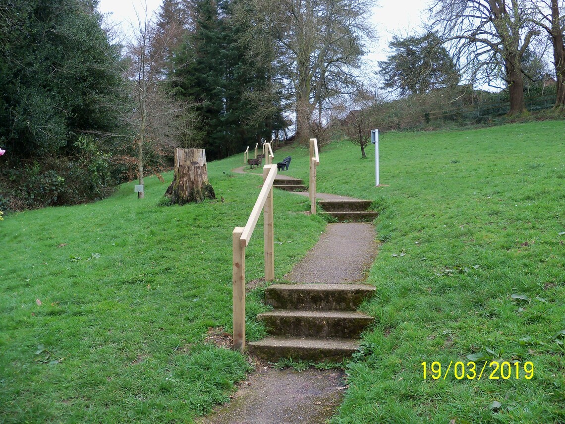East Devon District Council has erected handrails at several short flights of steps along the path accessed from the town end by the green Borough Footbridge: