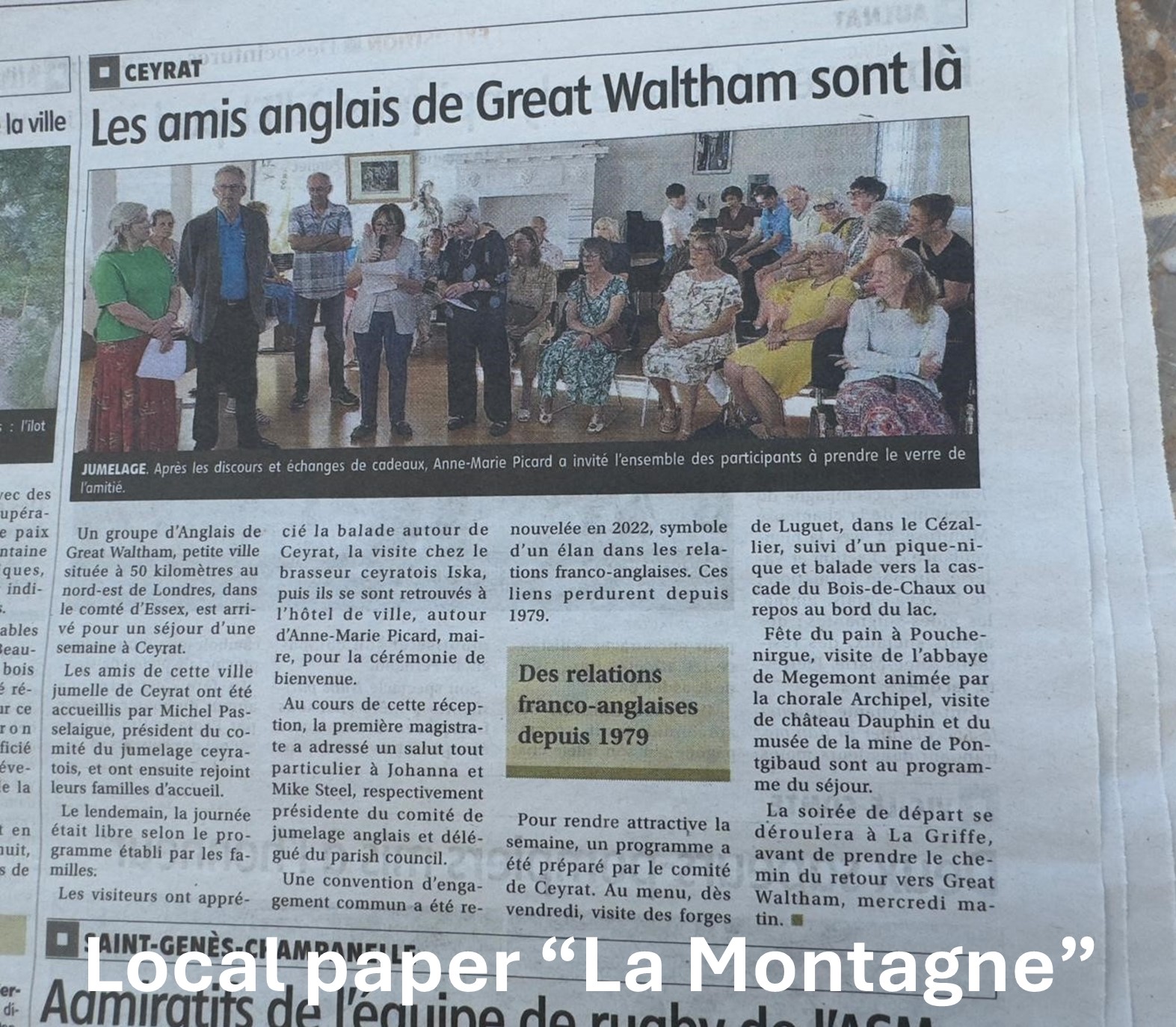 24th July to 31st July 2024, Ceyrat hosted 30 visitors from Great Waltham.