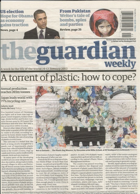 Plastic bag use is increasing in the UK, while Ireland's tax on bags has had dramatic success, The Guardian, 17/1/11.