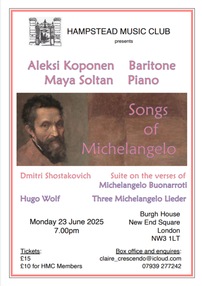 We mostly meet at Fellowship House NW11, a charming space for recitals, talks and meeting in Hampstead Garden Suburb - https://fellowshiphouse.co.uk/ .