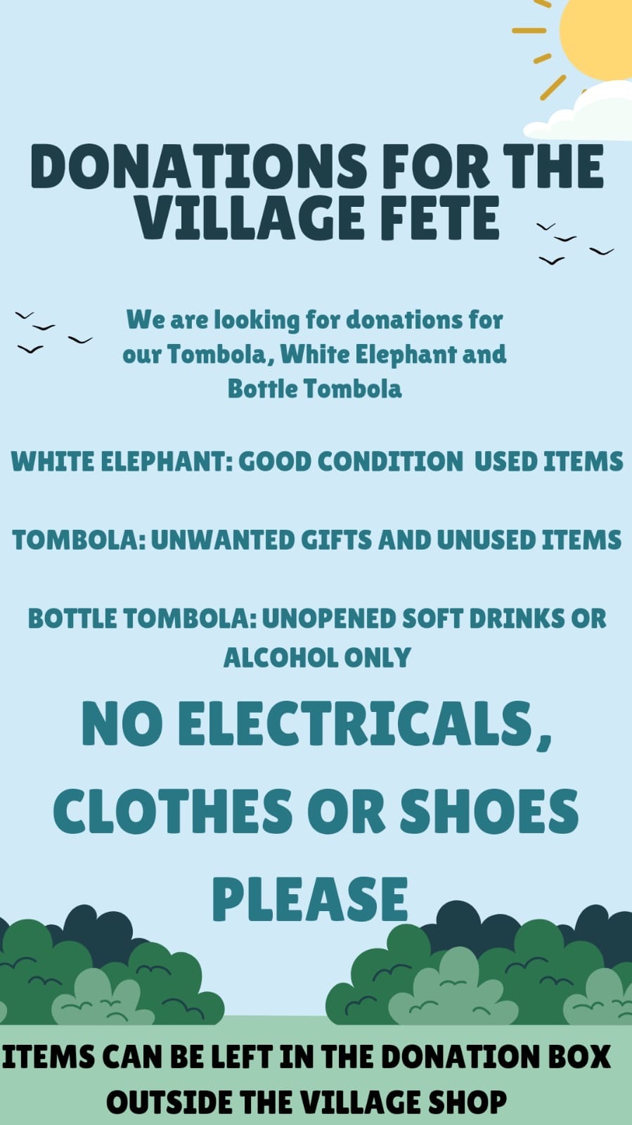 Please leave your donations in the dedicated box outside the village shop. Please note that the box is only available when the shop is open.