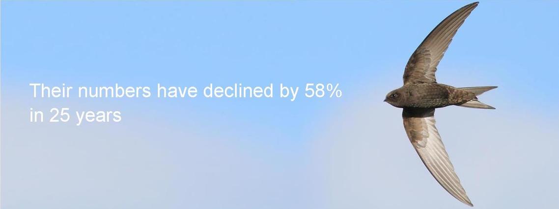 Swifts under threat - Sadly these beautiful birds are in trouble with a 58% drop in breeding numbers in just 25 years.