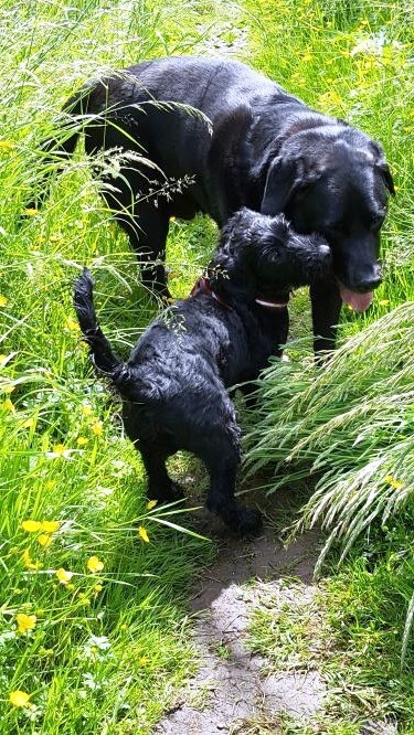 This week marked a landmark in Doddie’s life – his first haircut! It was with some trepidation that I approached the groomers, saying that “I hope he lets you do it and I hope he doesn’t bite”. “No problem, we can handle him” was the rejoinder. I left Doddie in their capable hands fervently singing to myself my much adulterated version of the Brotherhood of Man’s Hit song “Save all your kisses for me” substituting nippies for kisses – “ Save all your nippies for me, save all your nippies for me, bye-bye, Doddie, bye-bye”. One and a half hours later I picked him up. Well, he fairly swaggered out of the groomers. Gone was the dreadlock Doddie and hello to Mr Cool Dude Doddie. He is now a close cut shiny boy. “How was he?” I asked, “Great” was the reply! So he does save all his nippies for me! Last Sunday also marked his first venture into “doing good”. He was joined by his mate Alfie Arnott to do a virtual walk on behalf of the charity created by Doddie Weir to raise awareness for Motor Neurone Disease. Well done boys. They will soon be sporting their new leads and Doddie will have his collar “My name’s Doddie” *, a very grown up week. I am sure normal service will be resumed by next week, this good behaviour can’t last! (Ann)