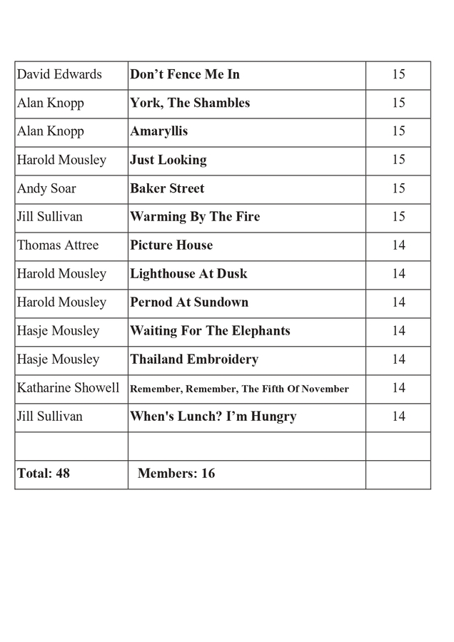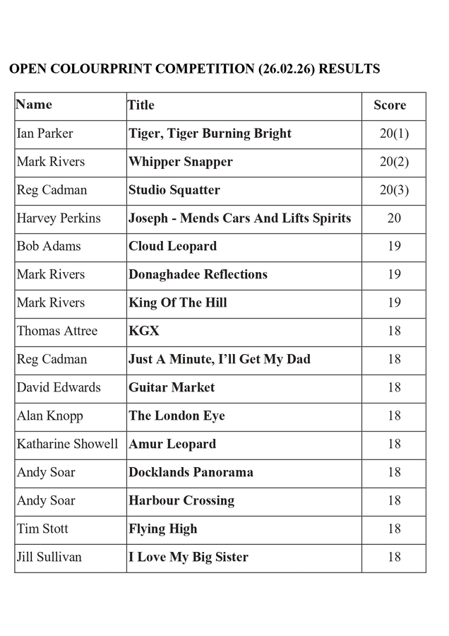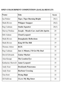 All the competition entries and the Open Colour Print Scoresheet are now published.