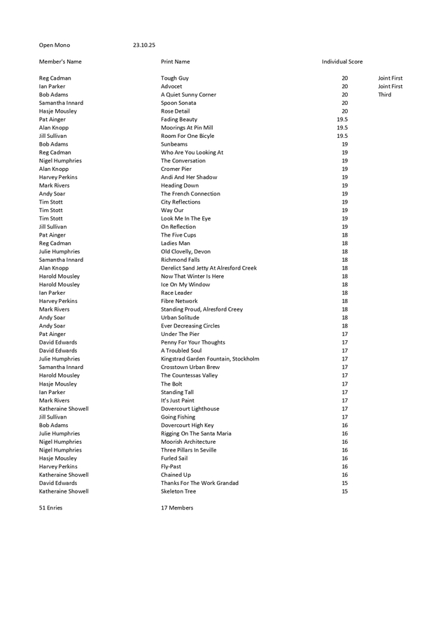 All the competition entries and the Open Mono Print Scoresheet are now published.