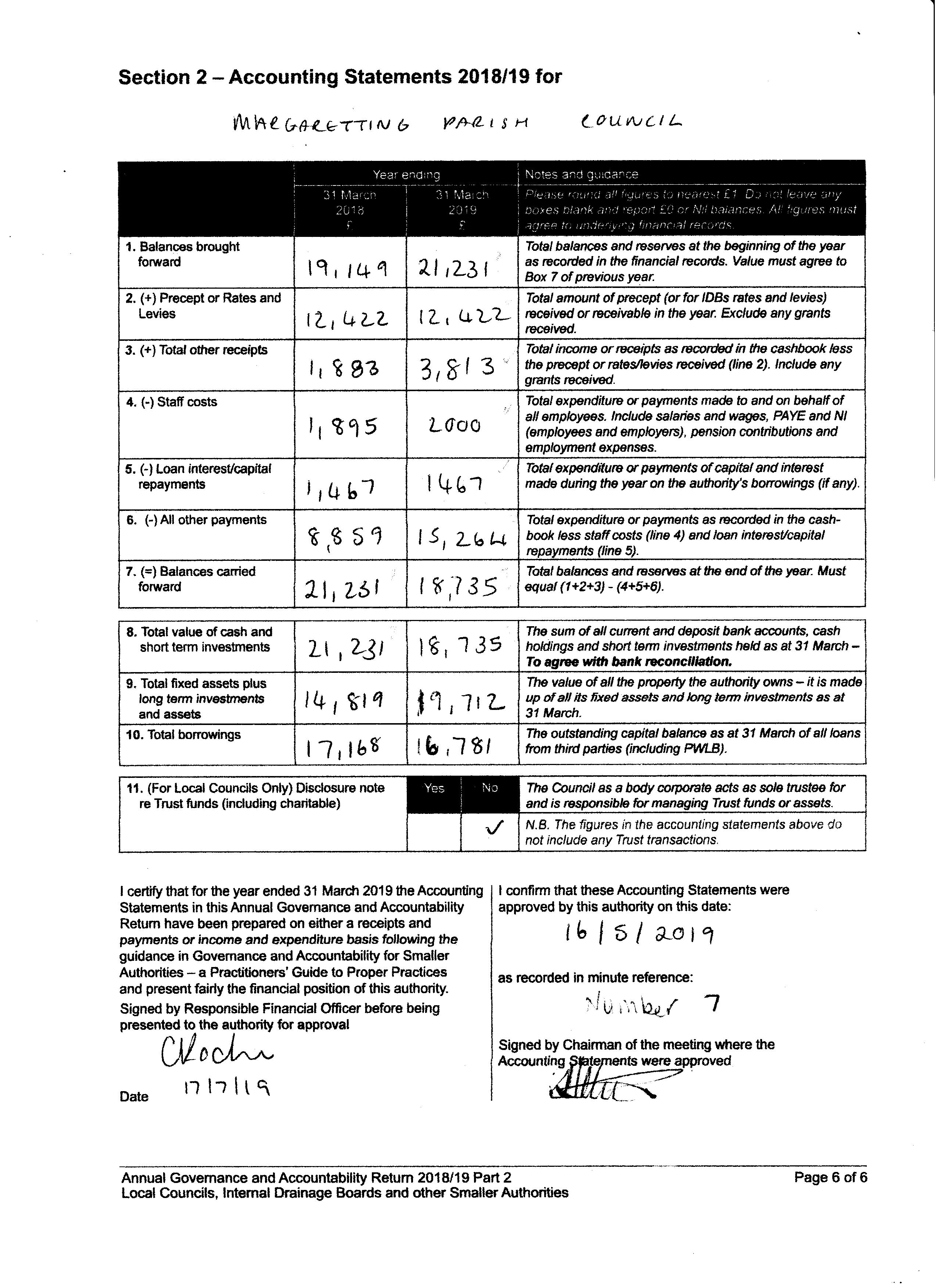 Annual Governance and Accountability Return 2018/19